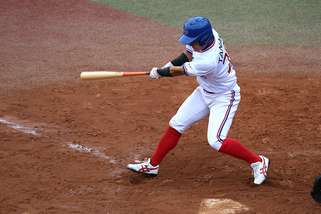日産は2点を追う8回裏、2死から四番:石飛選手の2塁打と続く小柴選手のタイムリーで1点差に詰め寄ります。そして9回裏、ヒットで出塁した石毛選手への牽制が暴投となり石毛選手は一気に三塁へ、ここで田中選手がレフト前に流してタイムリーで同点に追いつきました。