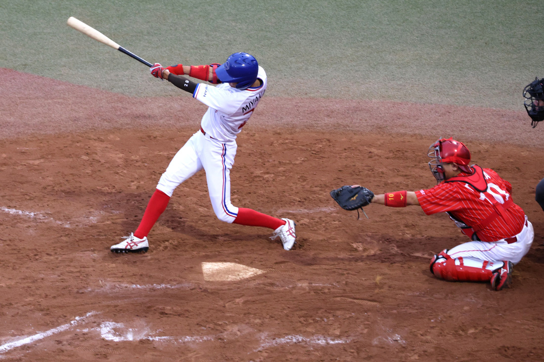 試合は無死一二塁で始まるタイブレイクの延長戦へ。10回表の相手の攻撃を0点で守り切った日産、先頭の宮川選手がセンター前で無死満塁、一死後に石飛選手が死球を受けて押し出し、サヨナラ勝ちを果たしました!