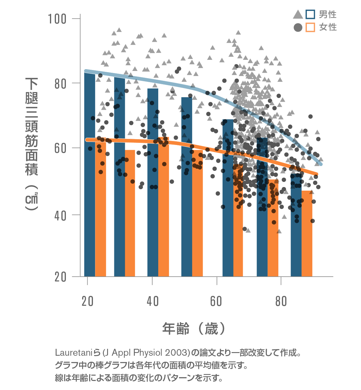 (ふくらはぎの筋)面積の加齢変化