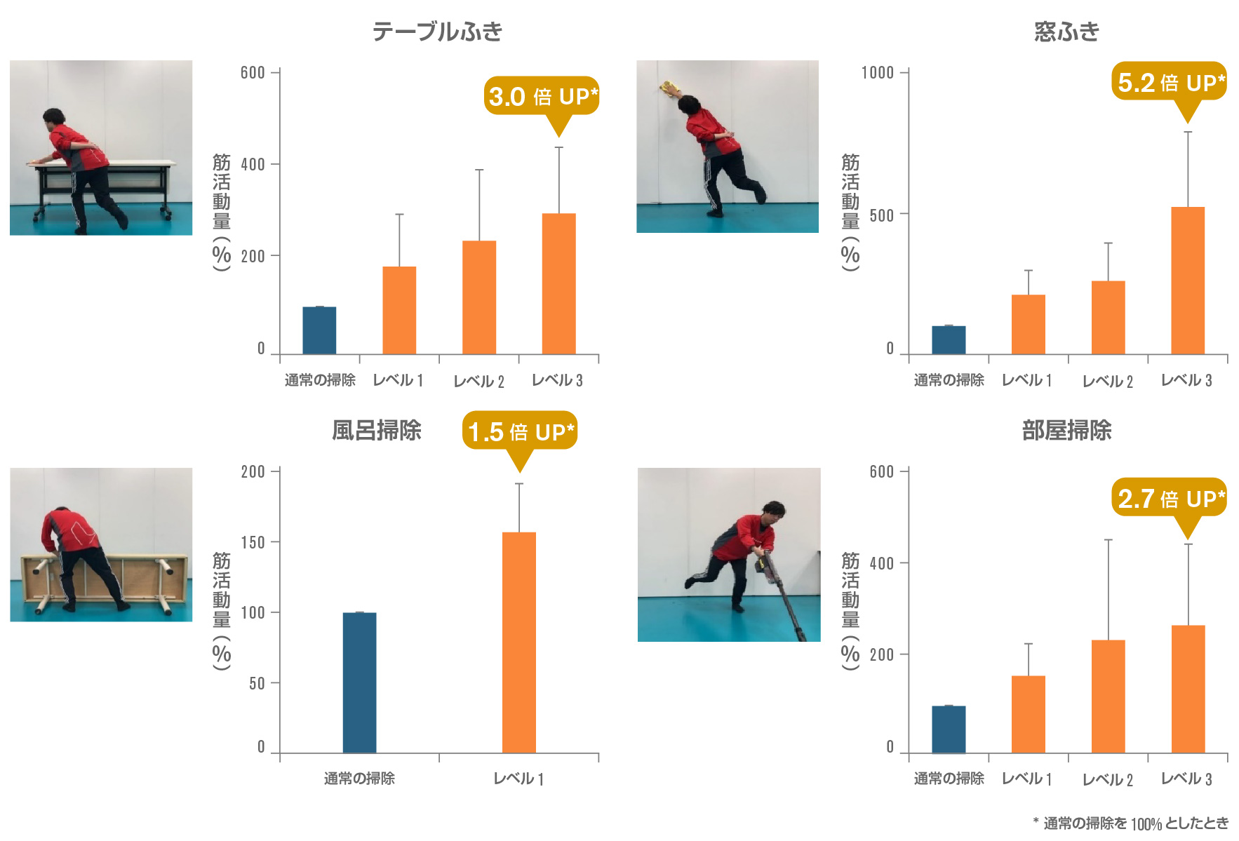 図2 通常の掃除とスケートぴかぴか掃除の筋活動量の比較